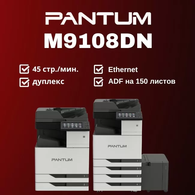 Pantum M9108DN — лазерное монохромное устройство, которое объединяет в себе функции печати, копирования и сканирования. Оно идеально подходит для средних и больших рабочих групп благодаря поддержке формата А3 и скорости печати до 45 страниц в минуту (A4 по ISO/IEC 24734). Разрешение устройства достигает 1200×1200 dpi, что обеспечивает высокое качество печати. Большая емкость расходных материалов гарантирует длительную работу без необходимости частой их замены. Также M9108DN поддерживает функцию дуплекса, что значительно экономит время и ресурсы.